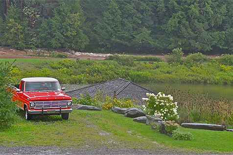 We are now hosting Barkaboom Special Events in the new Dry Creek Palapa and Downstairs in The Big Red Barn recently converted to its Reclaimed Grandeur. We'll accommodate a limited amount of Special Events and Weddings. We are not an out of the box, pristine Catskill Location for your special event. Barkaboom features acres of sweet farm vistas, 3000' of Little Delaware River Frontage, meandering trails, perennial gardens and run on fieldstone walls.